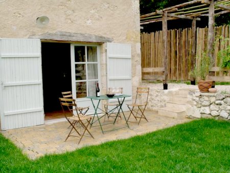 moulin. Elle donne sur le ruisseau et la campagne environnante. Elle