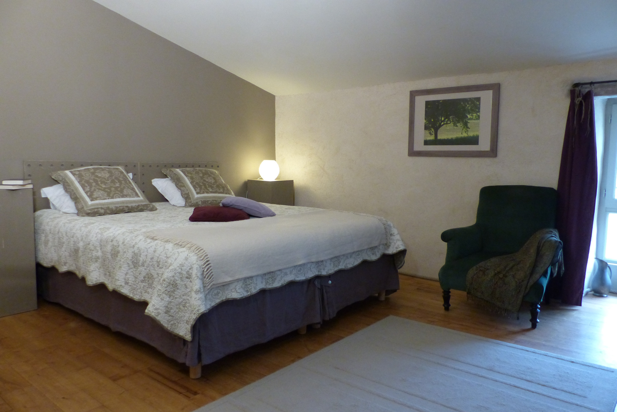 situe à l’étage du moulin. Elle donne sur la campagne environnante.